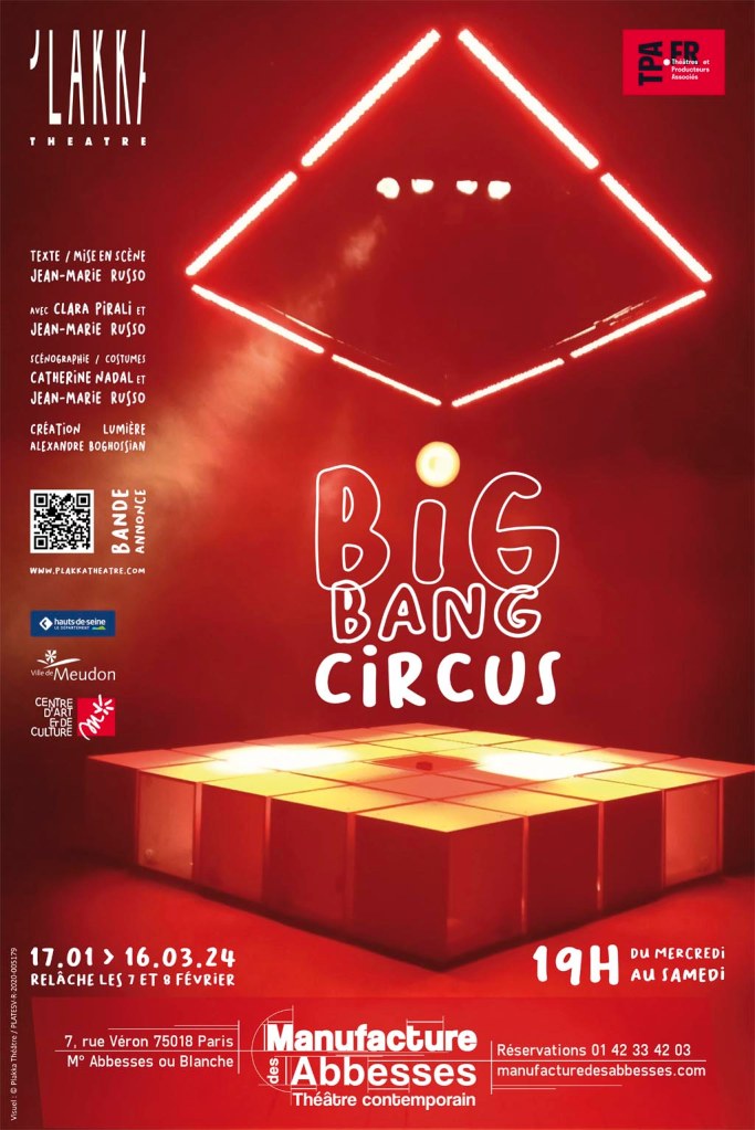 À travers sa pièce justement intitulée Big Bang Circus, l’auteur, également acteur et metteur en scène, se pose des questions métaphysiques. Dans quel monde évolue-t-on ? Quel avenir nous attend et comment faire avec le présent ? Il partage ses craintes et son pessimisme avec sa partenaire, excellente Clara Pirali (…) S’ils veulent faire réfléchir, c’est réussi.